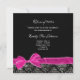 Bold pink sheer bow and ribbon on damask border for graduation invitation