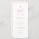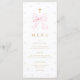 Elegant baptism menu cards that feature light pink bow and pearls and a simple gold cross.