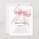A clear, transparent background, decorated with a pink large bow with pearls. Personalize and add a name and party details.