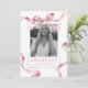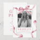 Celebrate your graduate's milestone with our simple yet elegant graduation party invitations. Each card features a striking white background, garnished by a photo of your grad framed by a cute pink watercolor bow and ribbon. Flip it over for the party information that is easy to personalise.