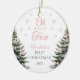 "Oh What Fun" Baby's First Christmas Ceramic Ornament with pine trees and pink bow details.