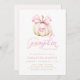 Celebrate the arrival of your little pumpkin with this soft and elegant pink baby shower invitation. Featuring delicate butteryellow watercolor pumpkins, a gentle blush palette, and coquette pink ribbon, it’s perfect for a cosy fall baby shower with a feminine touch.