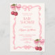 Pink bow ribbon cherry baby shower invitation