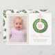 Pink Bow Sash Christmas Monogram Wreath Holiday Card