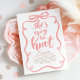 In this bridal shower invitation, a handwritten blush pink brush lettering dances across the page with expressive strokes and playful movement, making the message "She's Tying The Knot" feel lively, modern, and full of personality. The curly soft pink bow frame pulls everything together into one bold, cohesive composition. Designed for brides who appreciate modern design with a touch of artistic flair.
