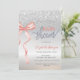 Pink Bow Silver Glitter Bokeh Baby Shower Invitation