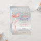 Cute baby shower invitation features pink bow on a silver glitter bokeh background. These baby shower invitations are easily customised for your event by simply adding your details.