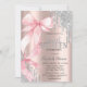 Pink Bow Silver Glitter Drips Rose Gold Sweet 16 Invitation