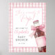 This fun baby shower welcome sign features a retro soda bottle with a pretty pink bow and gingham background. Designed by Thisisnotme©