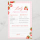 Pink bow Strawberry theme baby shower Prediction & Advice Game. Guests will enjoy making predictions about the little one's arrival.