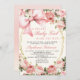 Pink Bow Sweet Baby Girl Is On The Way Baby Shower Invitation – A charming and feminine design featuring delicate watercolor pink roses, elegant gold frame accents, and a chic coquette-style bow. Perfect for a garden-themed “Baby in Bloom” celebration, this soft blush pink invitation exudes grace and sweetness, making it ideal for welcoming a precious baby girl. The editable template allows you to personalize every detail with ease, creating a custom design that matches your shower’s theme perfectly. Available as an instant digital download for quick, eco-friendly sharing via text or email, or as a professionally printed invitation through Zazzle for a polished, high-quality finish.