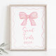 This adorable design features a hand painted pink watercolor bow with a squiggle border.
