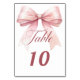 Personalise and your table numbers one by one. A white background decorated with a pink bow.