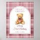 This fun birthday welcome sign, featuring a cute teddy bear with a pink bow, on a tartan plaid background, can be personalized with all your special birthday party details. Designed by Thisisnotme©