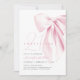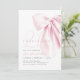 This elegant invitation features a charming blush pink bow and elegant script font.
