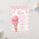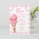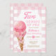 Pink Bow Two Scoops Of Fun 2nd Birthday Gingham Invitation