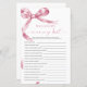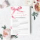 Pink Bow "Who Knows Mummy Best" Game – Add some fun to your baby shower with this charming game card featuring a delicate blush pink bow design. This "Who Knows Mummy Best" game is perfect for engaging guests and celebrating the mummy-to-be in style. With elegant script and feminine accents, this game card is a beautiful addition to any baby shower theme, making it a memorable keepsake for the mum and her loved ones.