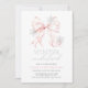 Pink Bow Winter Onederland 1st Birthday Invitation featuring a soft, blush pink bow adorned with delicate snowflakes, this design exudes a modern yet classic winter wonderland vibe.