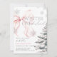 Pink Bow Winter Onerderland Girl 1st Birthday Invitation