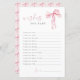 Stylish pink bow wishes for baby game that features a watercolor bow graphic, a blush pink colour palette and a modern font. It is perfect for a modern girl's baby shower and you can pair it with anything in the BLYTHE collection for a cohesive look.