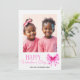 Pink bow with hearts stripes Valentine's Day photo Holiday Card