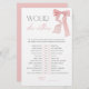 Pink Bow Would She Rather Baby Shower Game