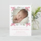 Introduce your new baby with this cute, Christmas themed birth announcement with a delicate hand painted frame with pink bows and greenery. Customize it with your baby’s name, photo and birth stats.