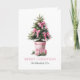 A wonderful little Christmas tree decorated in lovely pink bows and ribbons in a pink pot looks elegant for the holiday season. At the same time, it is cute as can be. It is done in watercolor and is of vintage origin, but it looks so modern and trendy. We hope you love it and will enjoy sending this “Merry Christmas” folded holiday card to your relatives and friends this holiday season.