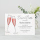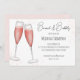 This design features a watercolor brunch and bubbly bride, a bridal shower wine champagne drinks, QR code gift registry online, URL scannable website address, a pink simple minimalist minimal design, a trendy stylish calligraphy script font, a champagne flute glass toast bar, a whimsical typography text style, a brunch with the bride invitations, for her bride to be