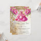 A beautiful watercolor ivory cream and golden border edge has gorgeous peony flowers in full bloom along the top edge and delicate floral swirls along the top and left which forms a frame around customisable calligraphy text templates. A stunning pink bridal gown with ruffles and a tight bodice appears between the two flowers giving a touch of luxurious elegance to the overall design. This invitation is ideal for a summer, spring or fall (autumn) wedding that is being held in a garden or outdoor venue. Celebrate the bride to be with this elegant, trendy and modern design that is ideal for a bridal shower, Quinceañera or business launching their new range of evening wear and wedding dresses to clients.