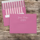 This design features a pink simple minimalist minimal, stylish trendy calligraphy script font, a basic 5x7 a7 plain, modern simple typography text, with a return address back flap printed, a printed return address envelope, with bright colourful cute whimsical pink, with handwritten creative lettering, a simplistic chic girly girl, a pink cute stylish envelope with pink striped striped