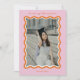 The Bright Squiggles Graduation Announcement Card is a vibrant and stylish way to share your exciting news. The front of this eye-catching card features a photo framed by a playful squiggly line border in retro orange, set against a lively pink background. This fun and modern design highlights your graduate’s personality and joy on this special occasion.