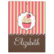 Cute cupcake design with option of custom name. Cupcake itself has sprinkles and strawberry on it. Rest of the design is in pink, beige and brown colours.