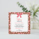 A sweet lace border frame and a fun polka-dot background pattern adorned with a darling little bow make up this Sweet 16 birthday party invitation.