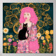 Pink Bubble Gum Lady with Gustav Klimt Cat Art Poster