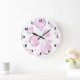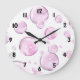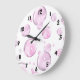 Pink Bubbles with Black Numbers Large Clock