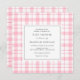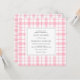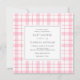 Baby Shower invitation featuring a classic pink buffalo plaid background. These trendy invitations are perfect for a rustic baby shower. Customise with your information for the mum to be. Click "click to customise further" to change the font style, size, or colour.