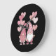 Pink Buffalo Plaid Heart Gnomes Valentine's Day Large Clock