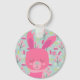 Pink Bunnies and Flowers Key Ring