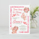Cute baby bunny artwork with a bouquet of pink roses is featured on this birthday invitation.