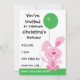 Pink Bunny Holding Green Balloon Birthday Invite