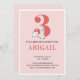 Light Pink background, with large dark pink coloured 3 and bunny images. Great for any 3 year olds birthday and can easily edit the text.