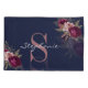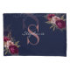 Pink Burgundy Gold Floral Monogram Custom Name pillow case on blue background for your dorm room or new home. Easy to personalise. Get yours today!