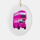 Illustration of a bright pink double decker bus. Easily customise and choose your own background colour or add text. Image available on various gifts and products.