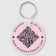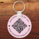 Customisable QR Code keychain, with a pink background. To generate a new QR code on the design, add your website URL or social media handle in the " personalise this template" feature.