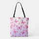 Pink butterflies and flowers pattern tote bag