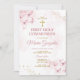 Pink Butterflies Gold Cross First Holy Communion Invitation