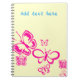 Cute customised spiral notebooks for girls that features a variety of pink butterflies on a light yellow background. Personalise these writing books with a special girl's name and they'd make great gifts. Girls who love writing will love our cute customised notebooks.