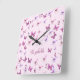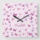 Pink Butterflies Pattern Custom Name Square Wall Clock