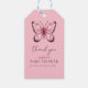 Add a delicate finishing touch to your baby shower favours with this butterfly-themed gift tag, part of the "A Little Butterfly Is on the Way" collection. Designed with watercolor butterflies, shades of pastel pink, purple, and dark rose, this elegant tag features a soft purple arch frame for a whimsical look. Perfect for tying onto treat bags, party favours, or gifts, these tags are ideal for a baby girl shower with a spring, garden, or butterfly theme. Fully customisable with your name or message for a personal, polished detail.